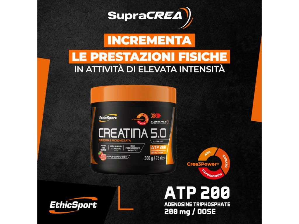 - Pro ty, kteří provozují silové sportyKreatin 5.0 je inovativní kreatinový doplněk s Crea3Power® a ATP, dvěma základními prvky pro podporu buněčné energie, ideální pro sportovce usilující o pokročilý výkon. Crea3Power® poskytuje tělu tři různé biologicky dostupné formy kreatinu pro optimální výkon. Je známo, že kreatin zlepšuje fyzickou výkonnost během krátkých, intenzivních zátěží. **Účinnost kreatinu je uznávána při denním příjmu 3 g. ATP je nezbytný pro produkci buněčné energie, podporuje tělo během fází vysoké intenzity a zvyšuje intracelulární energetickou účinnost. Kreatin 5.0, exkluzivní receptura z výzkumu EthicSport, je vysoce čištěný, mikronizovaný (200 mesh) a formulovaný pro optimální vstřebávání. Jeho vysoká kvalita je zaručena mikrobiologickou certifikací a testováním na doping*. Produkt je extrémně rozpustný, čištěný a vhodný jako doplněk sportovní stravy. Kreatin 5.0 je ideální podporou pro velmi intenzivní tréninky a pro ty, kteří požadují vysoký výkon.