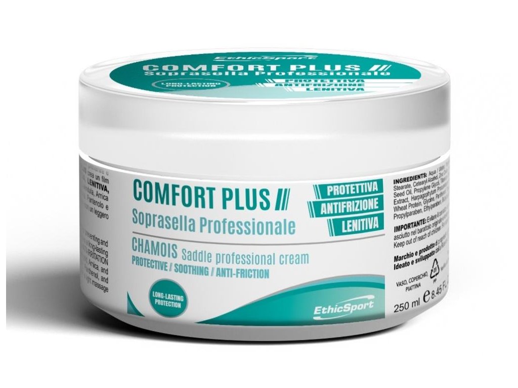 Comfort Plus je krém proti tření se zklidňujícími, zvláčňujícími a antifrikčními vlastnostmi. Doporučuje se pro sportovce náchylné k zarudnutí kůže nebo zranění během sportu. Doporučuje se pro cyklisty, kteří jsou v kontaktu se sedlem, běžce v oblastech vystavených intenzivnímu tření a sportovce obecně na oblasti vystavené traumatu kůže. Unikátní složení krému chrání pokožku před oděrkami způsobenými opakovanými sportovními aktivitami a výrazně snižuje zarudnutí způsobené třením. Vysoký obsah oxidu zinečnatého poskytuje účinné zklidnění a ochranu pokožky.